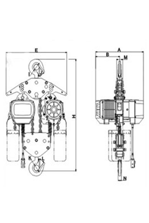 掛板式環(huán)鏈電動(dòng)葫蘆(7.5T-50T) 尺寸參考: