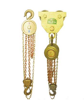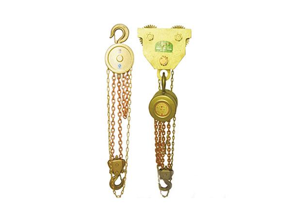 防爆手拉葫蘆以鋁青銅、鈹青銅作為毛坯,防爆手拉葫蘆外殼采用H62銅合金材料,其轉(zhuǎn)動(dòng)齒輪經(jīng)過高溫?zé)崽幚韽亩_(dá)到齒輪據(jù)有很高的耐磨性。在作業(yè)中產(chǎn)品相互摩擦撞擊不會(huì)產(chǎn)生機(jī)械火花,在易燃易爆場所不引爆氣體,有效防止火災(zāi)事故。